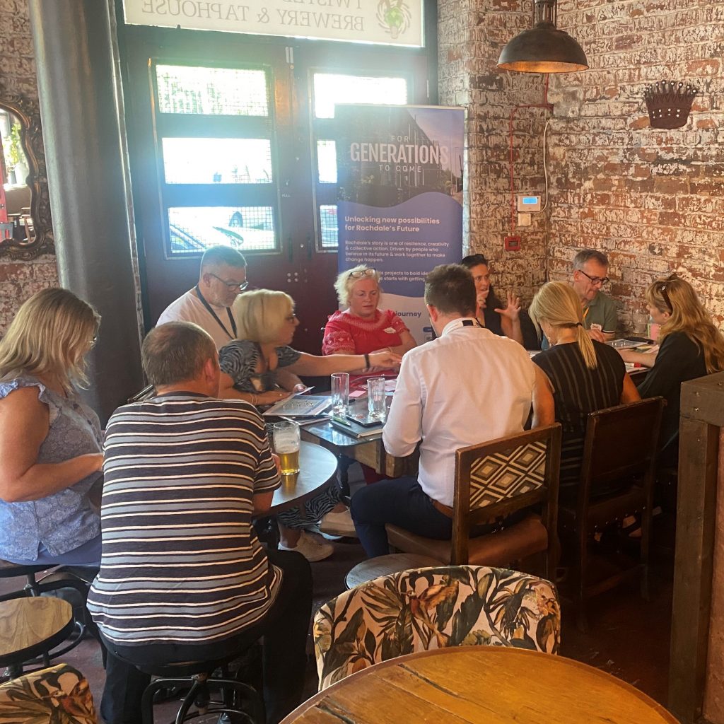 Our pop-up was hosted by The Twisted Mule Brewery, their bar was a welcome cool relief on a sweltering day. Drinks and ideas flowed as people joined from a variety of sectors including colleagues from businesses, education, public and community. By the end our ‘champions’ box was bulging with new recommendations, and we can’t wait to have follow up conversations. As usual some great ideas were formed, prompted by using the Our Future Place Tool.